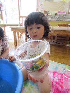 初めての冷たい感触がちょっぴり苦手なお友だちもいましたが、