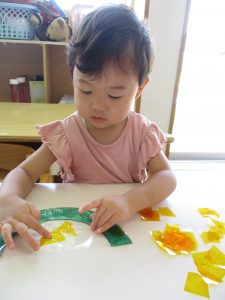 赤と黄色、それぞれ好きな色を選んで貼っています(^^)