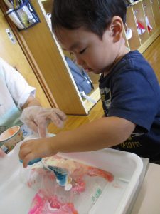歌に合わせて「みずいろ」「ぴかぴか」「あかいろ」の