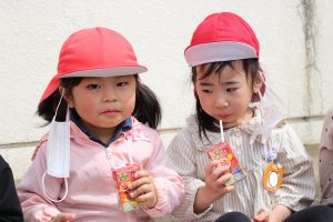 農民センターに到着後は、お楽しみのお菓子タイムです。