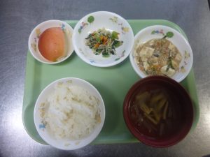 今日の給食は、 麻婆豆腐 華風和え りんご 春雨スープでした > 続きを読む