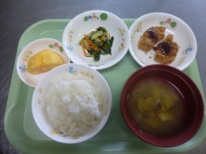 今日の給食は、 豆腐ハンバーグ こぎつね和え りんご みそ汁 > 続きを読む